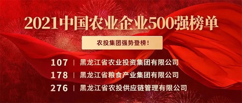 2021年12月,農(nóng)民日報社發(fā)起第五屆中國農(nóng)業(yè)企業(yè)500強評價活動,黑龍江省農(nóng)業(yè)投資集團有限公司以113億榮登500強榜單107位!