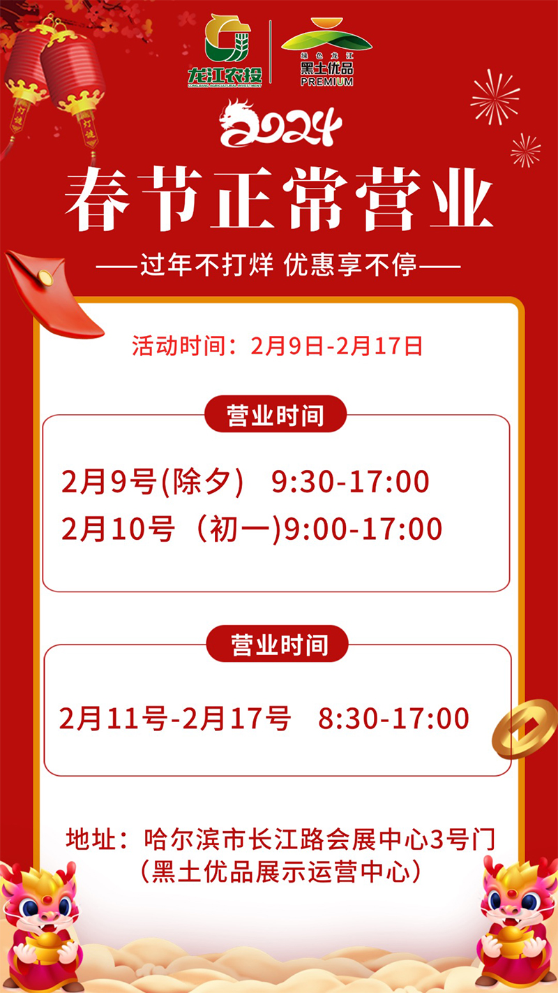 過年不打烊 優(yōu)惠享不停 黑土優(yōu)品展示運(yùn)營中心春節(jié)正常營業(yè)