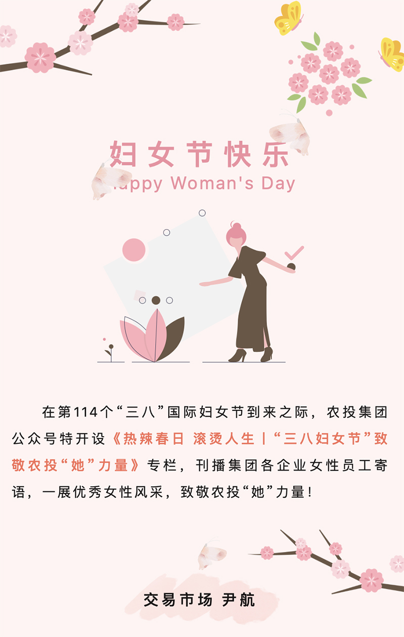 又逢三八婦女節(jié),一歲一禮,一寸歡喜。女人如花,花開如夢,生活不必很驚艷,有愛的人相伴,有愛的事可做,要有自己的精彩,做個自己喜歡的姑娘,不迎合,不媚俗,追逐自己的夢,不需要憑借誰的光,成為自己的太陽,化最美的妝,做自己的女王,遇見美好的自己。在此希望女神們好好擁抱一下自己,永遠幸福安康,節(jié)日快樂!