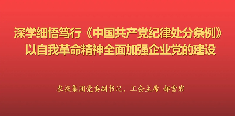 為深入貫徹黨中央部署和省委總體安排,推進(jìn)黨紀(jì)學(xué)習(xí)教育不斷走深走實(shí),5月24日,農(nóng)投集團(tuán)黨委副書記、工會(huì)主席郝雪巖到黨建聯(lián)系點(diǎn)黑龍江省農(nóng)投生物產(chǎn)業(yè)投資有限公司開展工作調(diào)研指導(dǎo)工作,了解各項(xiàng)工作進(jìn)展和企業(yè)經(jīng)營發(fā)展情況,并以《深學(xué)細(xì)悟篤行<中國共產(chǎn)黨紀(jì)律處分條例>,以自我革命精神全面加強(qiáng)企業(yè)黨的建設(shè)》為題作專題黨課輔導(dǎo)。農(nóng)投生物黨委書記、董事長武曉東參加主持會(huì)議。