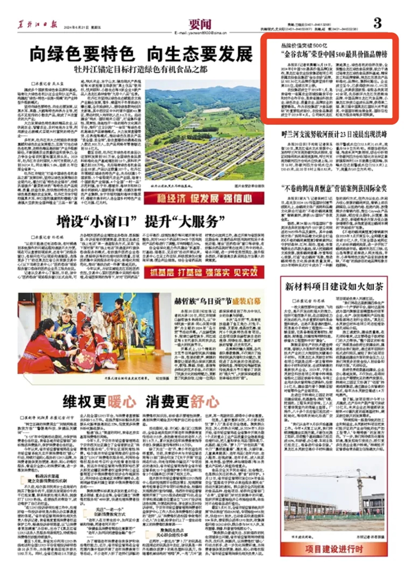 近日,黑龍江省農(nóng)業(yè)投資集團有限公司(以下簡稱“農(nóng)投集團”)“金谷農(nóng)場”品牌以500.36億元品牌價值榮登2024年中國500最具價值品牌排行榜第221位。五年五大步,“ 金谷農(nóng)場”品牌價值再攀新高,位居中國農(nóng)業(yè)品牌排名第八!新華網(wǎng)、人民網(wǎng)、黑龍江日報、龍頭新聞、極光新聞、新浪網(wǎng)等媒體紛紛報道。