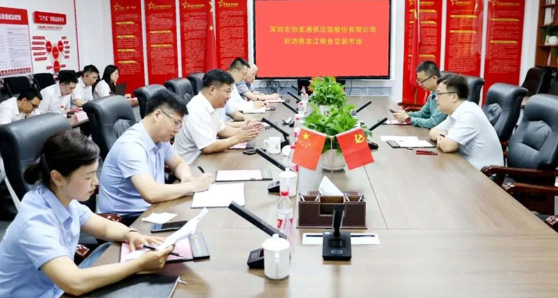 近日,深圳市怡亞通供應(yīng)鏈股份有限公司總經(jīng)理助理、戰(zhàn)略客戶事業(yè)部總經(jīng)理陳聰一行到訪黑龍江糧食交易市場,并圍繞相關(guān)合作事宜舉行座談交流。農(nóng)投集團(tuán)總經(jīng)理助理、糧食交易市場黨支部書記、董事長魏志偉參加座談。