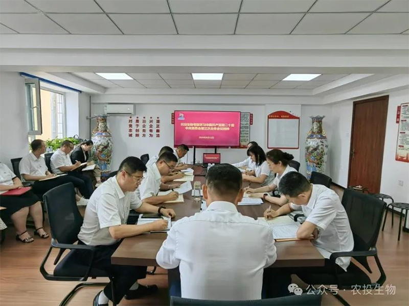 8月12日,農(nóng)投生物召開(kāi)專題會(huì)議深入學(xué)習(xí)領(lǐng)會(huì)中國(guó)共產(chǎn)黨第二十屆中央委員會(huì)第三次全體會(huì)議精神,部署貫徹落實(shí)舉措。會(huì)上,傳達(dá)學(xué)習(xí)了中國(guó)共產(chǎn)黨第二十屆中央委員會(huì)第三次全體會(huì)議公報(bào)、《中共中央關(guān)于進(jìn)一步全面深化改革、推進(jìn)中國(guó)式現(xiàn)代化的決定》及習(xí)近平總書(shū)記關(guān)于《中共中央關(guān)于進(jìn)一步全面深化改革、推進(jìn)中國(guó)式現(xiàn)代化的決定》的說(shuō)明。