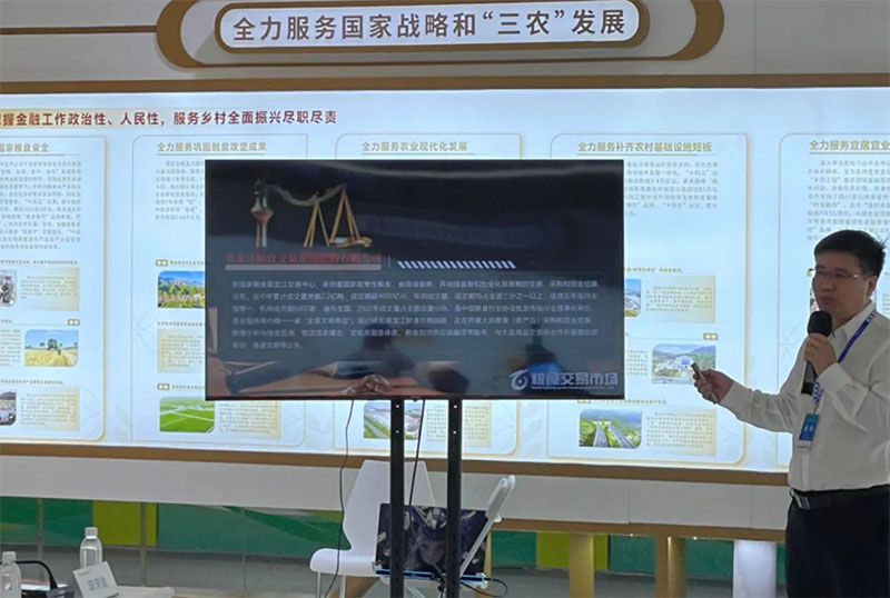 農(nóng)投集團(tuán)展位位于黑龍江展區(qū)核心位置,突出展示“金谷農(nóng)場(chǎng)”品牌及產(chǎn)品,以及糧食交易服務(wù)為促進(jìn)糧食產(chǎn)銷聯(lián)動(dòng)結(jié)合的發(fā)展成果。