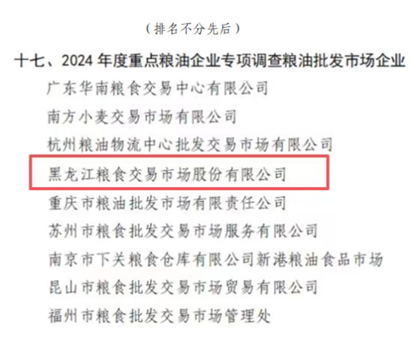 近日,中國(guó)糧食行業(yè)協(xié)會(huì)發(fā)布2024年度重點(diǎn)糧油企業(yè)專項(xiàng)調(diào)查結(jié)果。農(nóng)投集團(tuán)黑龍江糧食交易市場(chǎng)股份有限公司(以下簡(jiǎn)稱“交易市場(chǎng)”)第七次被評(píng)為重點(diǎn)糧油批發(fā)市場(chǎng)企業(yè)。